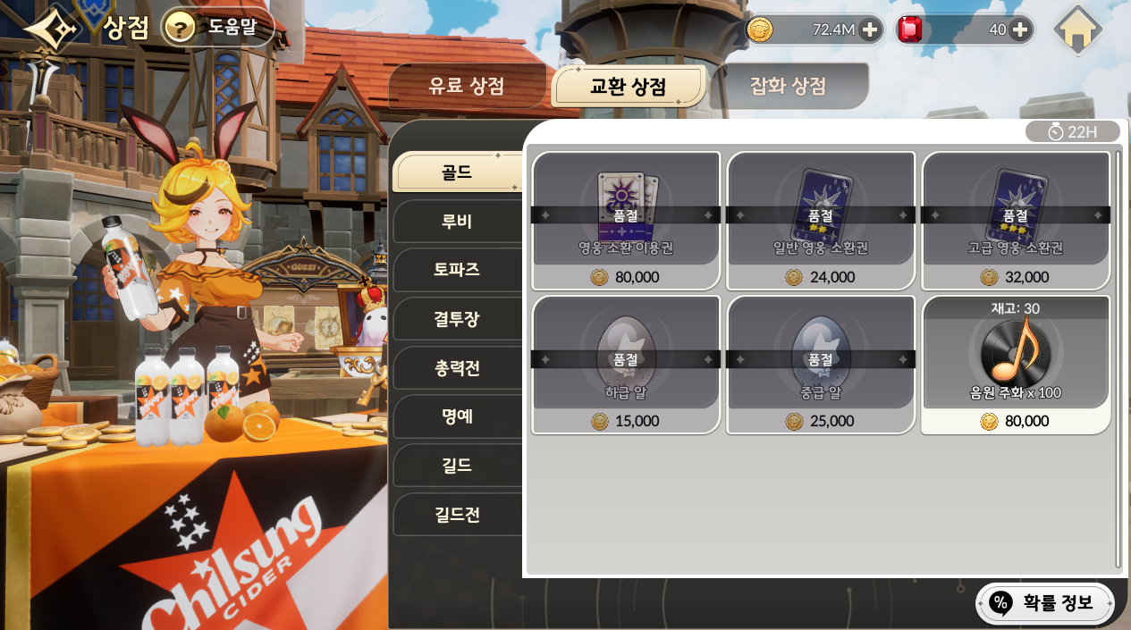 루비는 각종 이벤트, 쫄작 등에서 획득이 가능합니다.