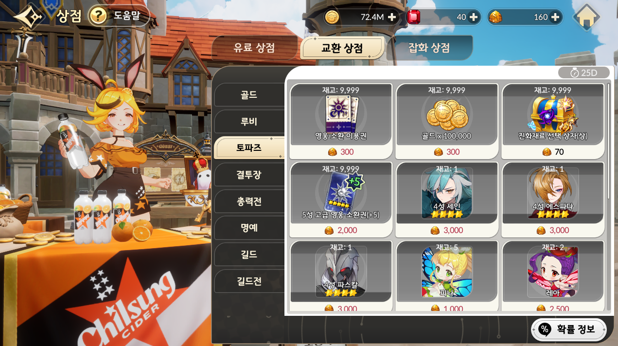 토파즈 과금을 통해서만 획득 가능한 재화로 신중히 사용해야 합니다.