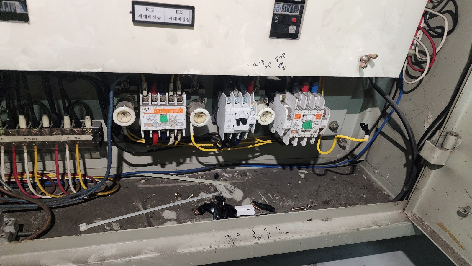 제어실 확인해서 조명제어 동작시켜보니 릴레이 하나가 동작이 잘 안되었어요
